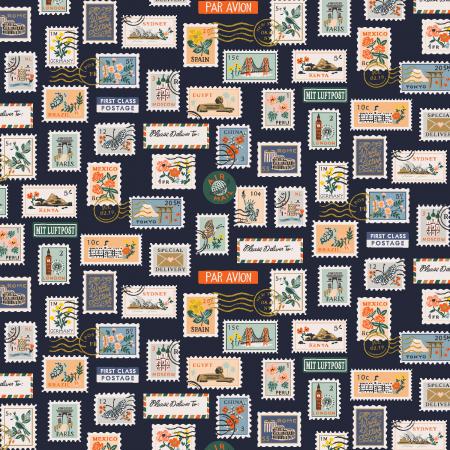 Bon Voyage - Rifle Paper Co. (Cotton+Steel) - Postage Stamps Navy