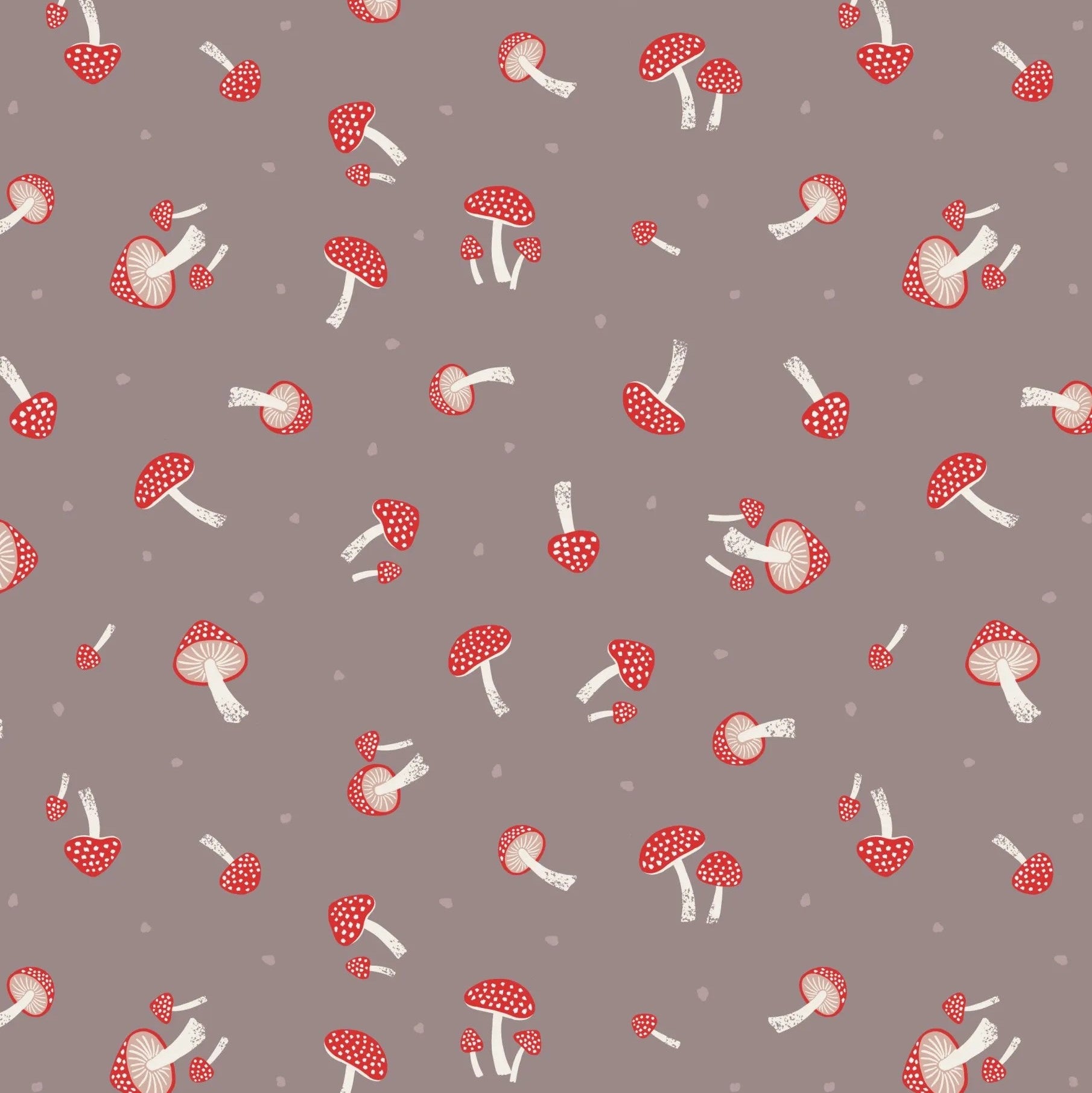 Mushroom on warm grey fabric from the Evergreen collection from Lewis & Irene.
