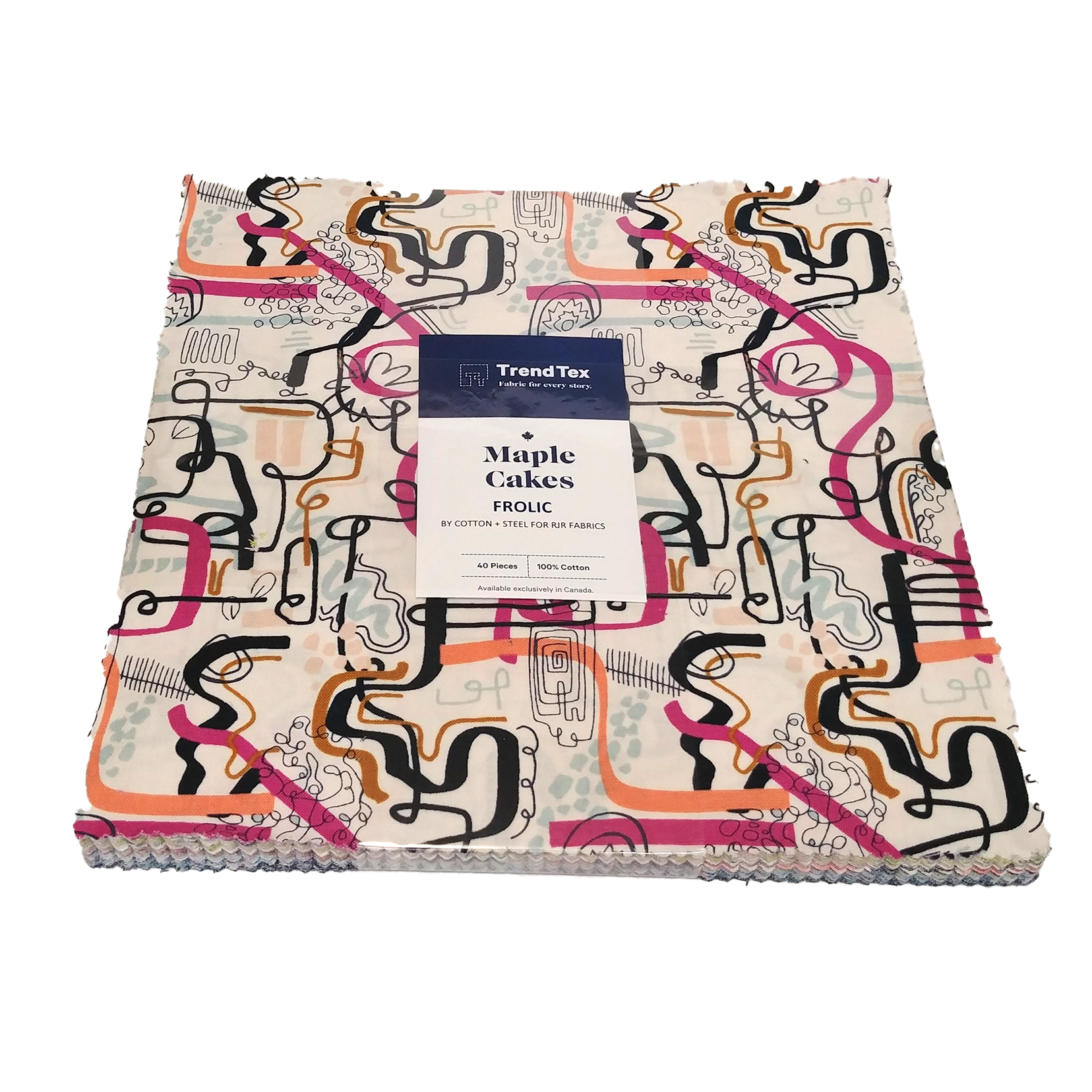 Maple Cake bundles are the same as Layer Cakes, and can be used for any patterns calling for Layer Cakes and/or charm packs. Each maple cake is equal to 4 packs of maple squares.