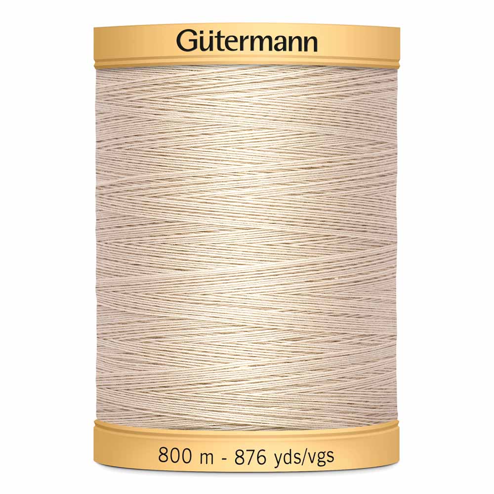 Gütermann 800 meter spool, 100% natural cotton thread in light gray. This thread is made with the finest, long-staple cotton and is strong with a silk-like lustre.