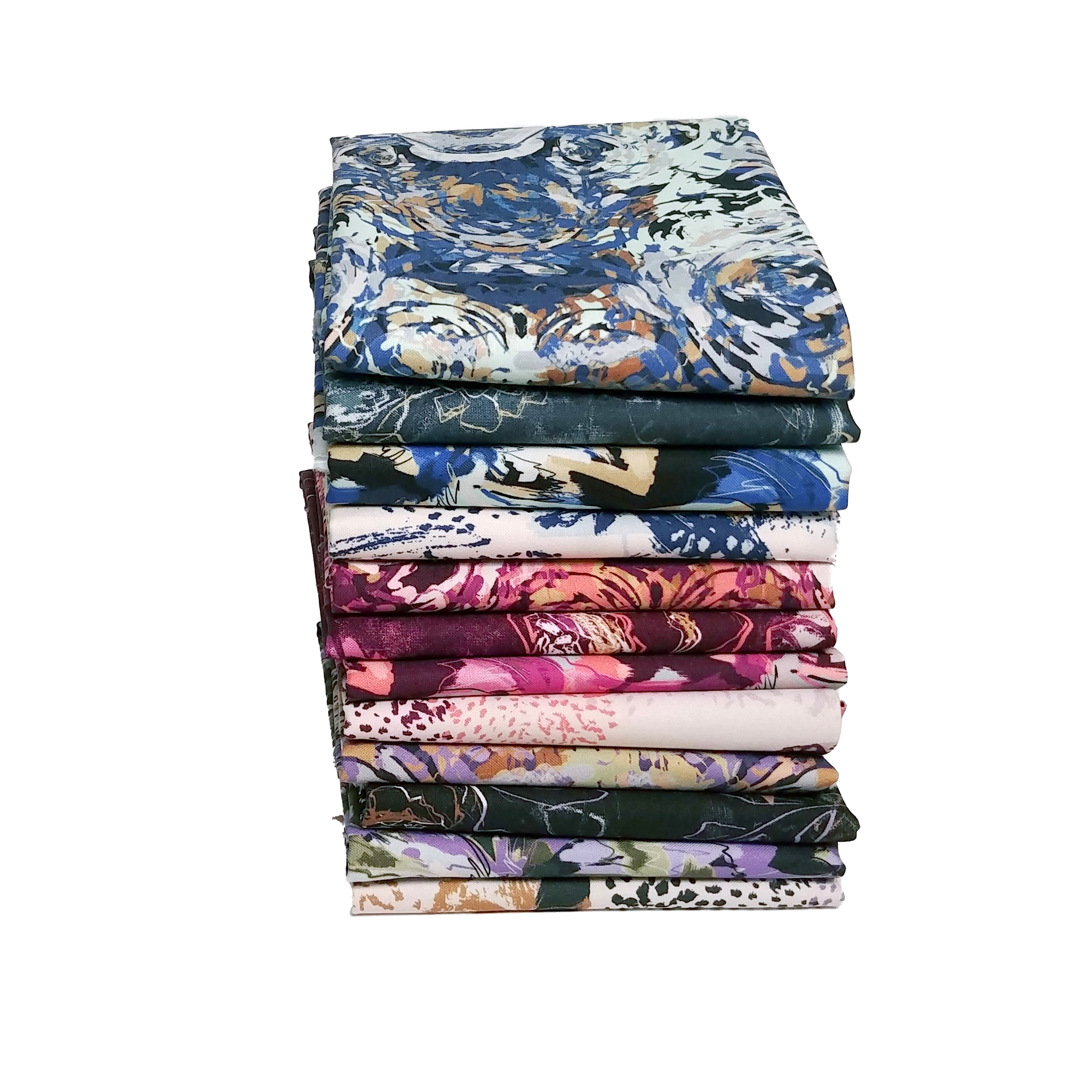 This bundle includes 12 fabrics. Each fabric measures approximately 10" x 44".