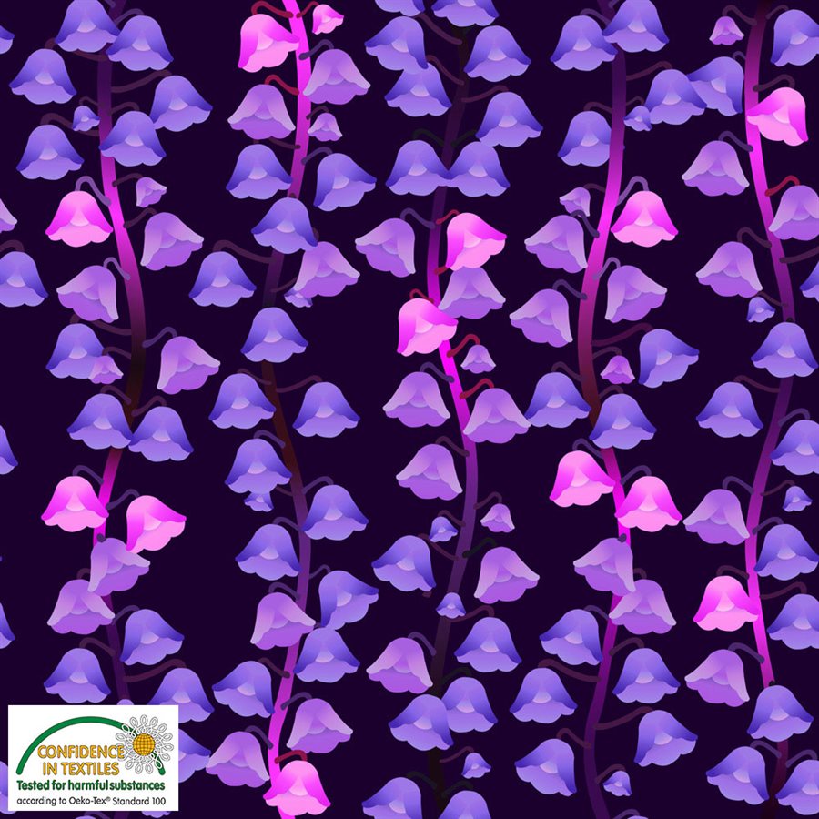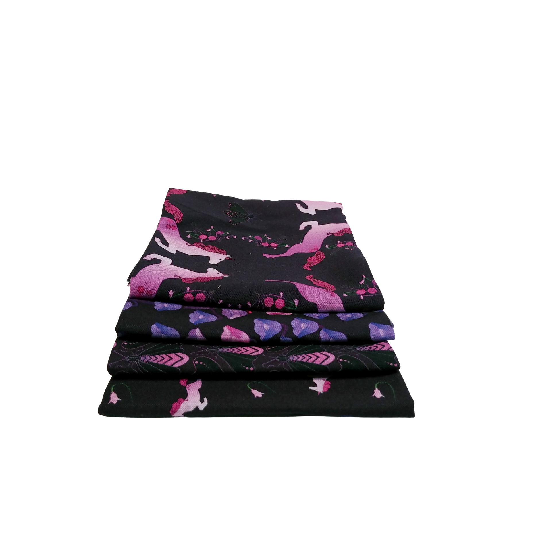 Luxury Unicorns collection by Stof Fabrics. Collection includes 4 different dark purple pink fabric with bright pink print.
