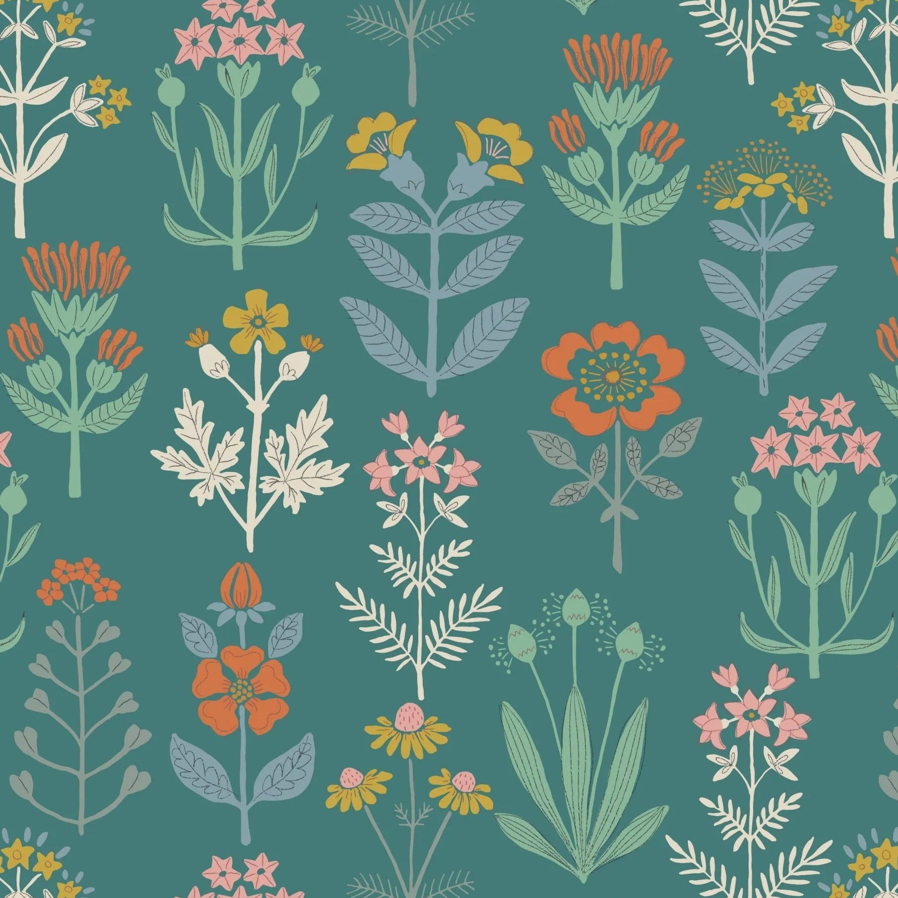 Majolica Floral Garden Green Fat Quarter (Lewis & Irene)