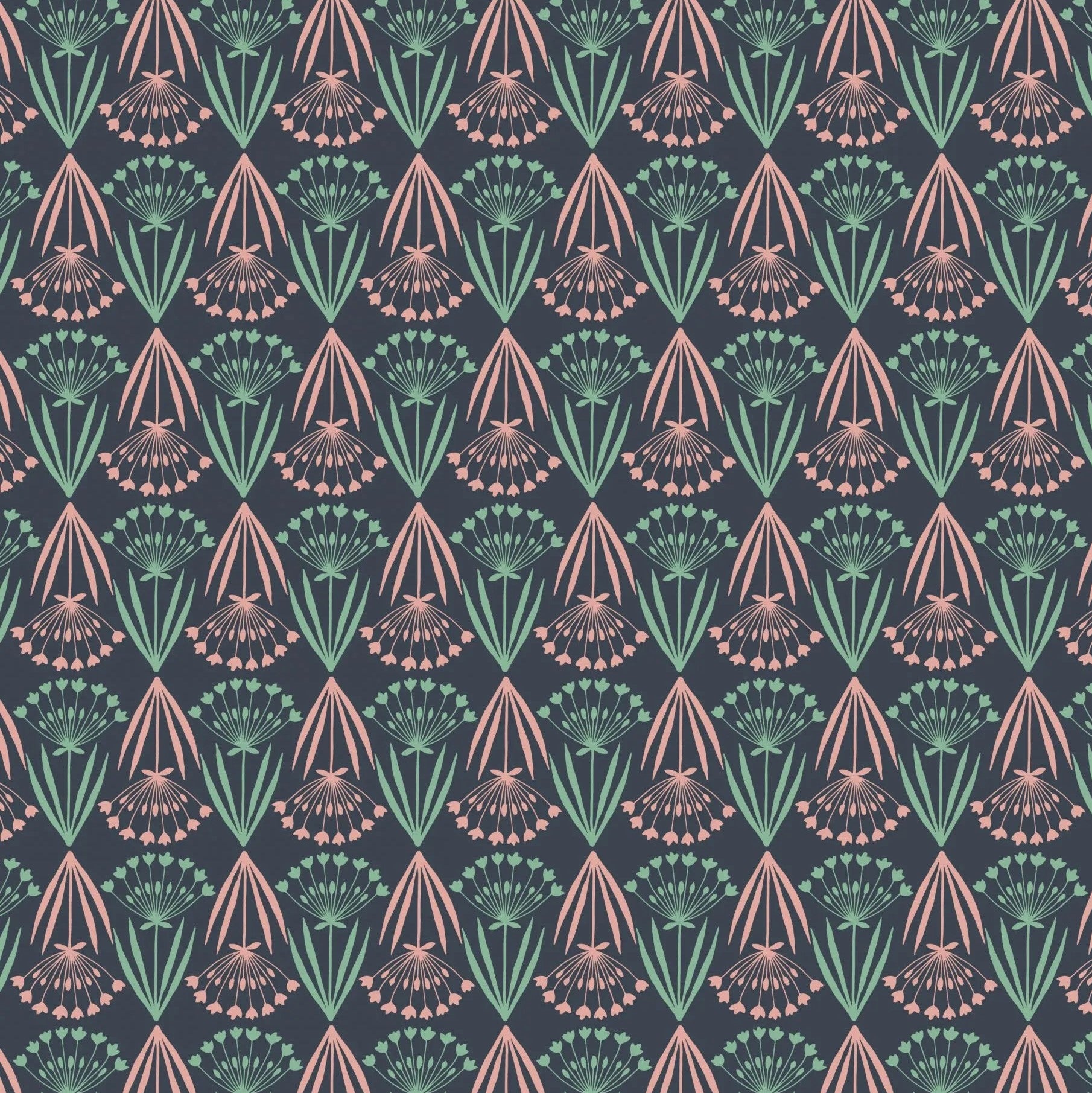 Floral Stems fabric on dark blue from the Majolica collection from Lewis & Irene.