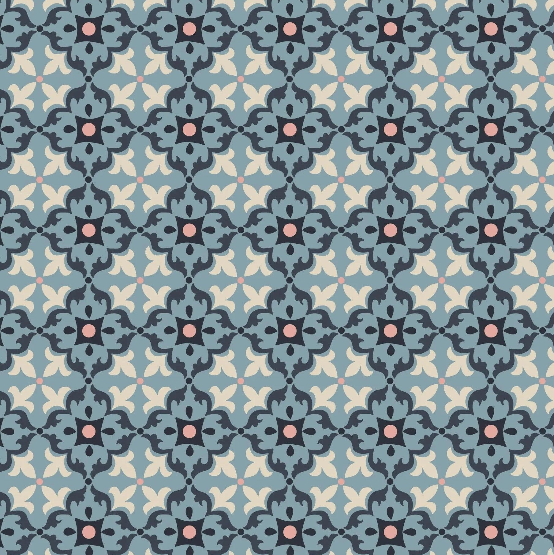 Multi Tile fabric on blue from the Majolica collection from Lewis & Irene.
