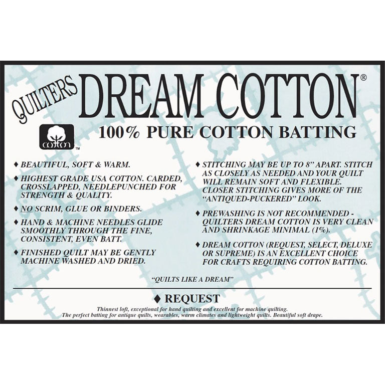 Quilters Dream Request Cotton Batting - Throw Size, White