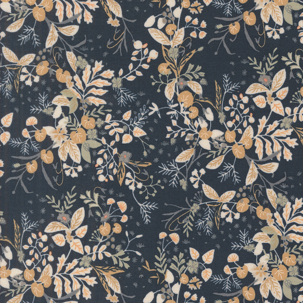 Herb Garden Florals cotton fabric in deep sea blue from the Rainier collection by Jessica Rose for Moda Fabrics.