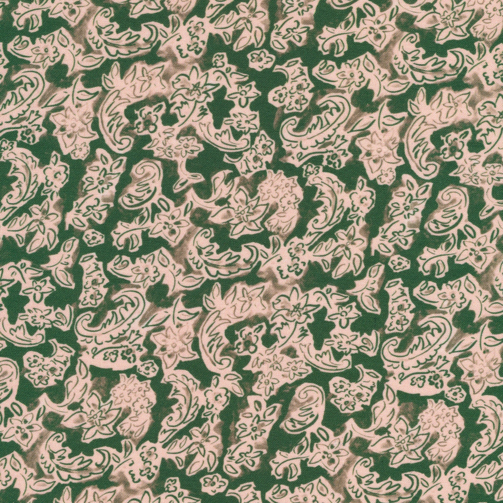 Chintz Wallpaper in green from the Sanctuary collection by Louise Cunningham for Cloud9 Fabrics. The Sanctuary collection celebrates the preciousness of possessions, nature, and the concept of home with fabrics featuring books, plants, flowers, cats and dogs.