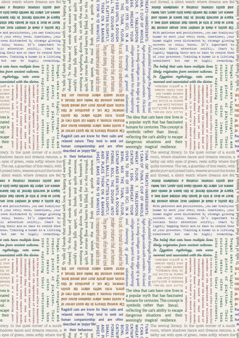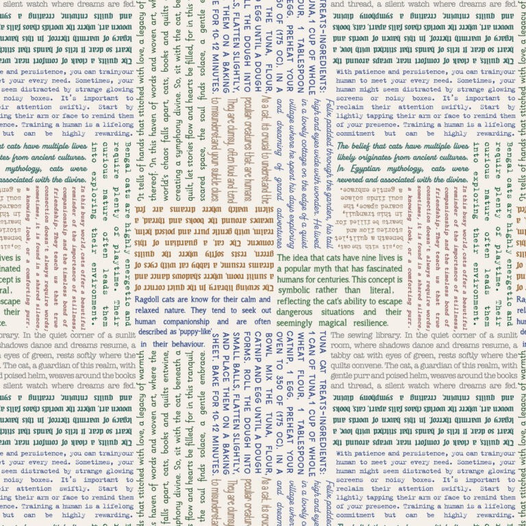 Cat Text fabric in cream from The Purrfect Book Club collection from Lewis & Irene.