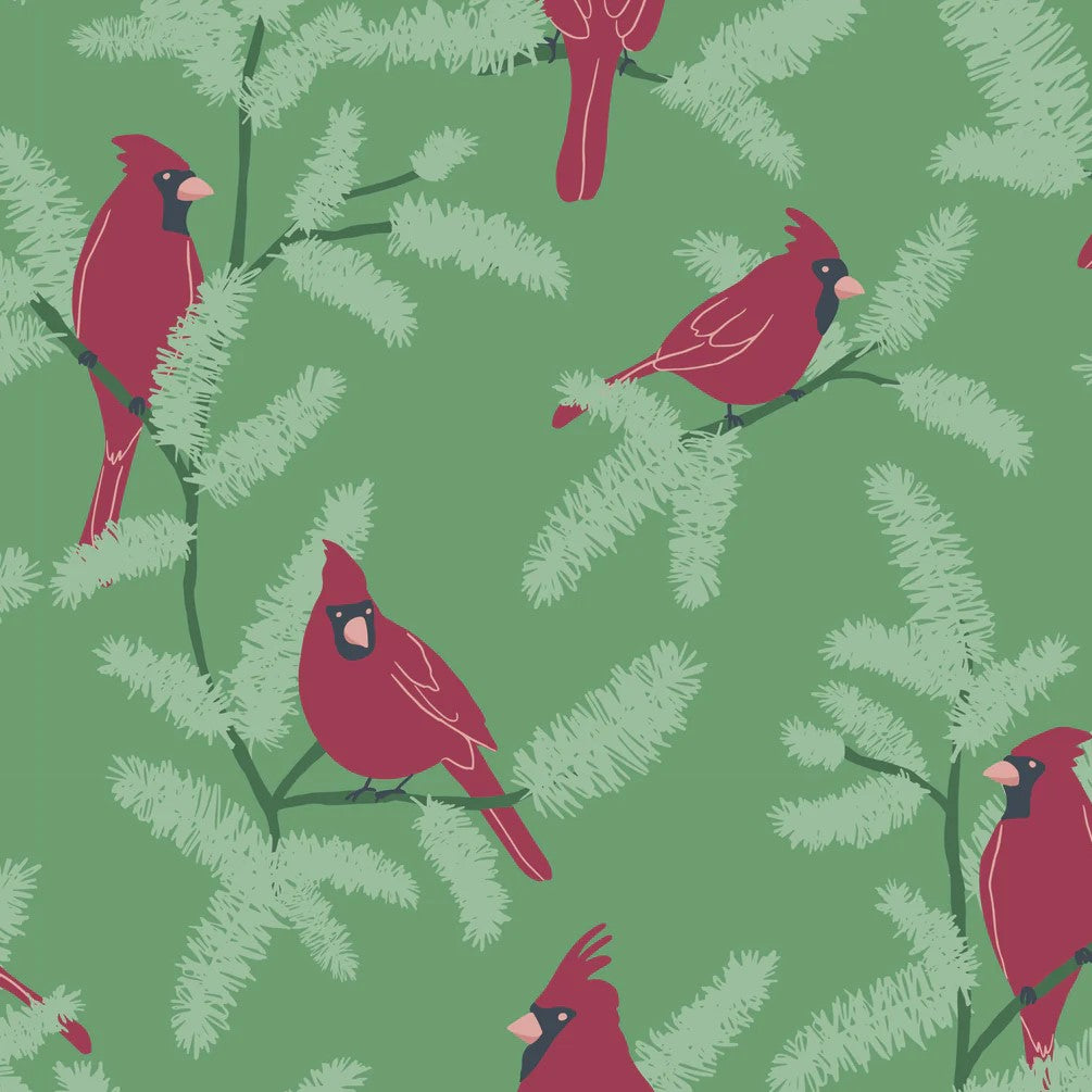 Cardinal fabric from the Wintry collection by Audrey Mann for Phoebe Fabrics.