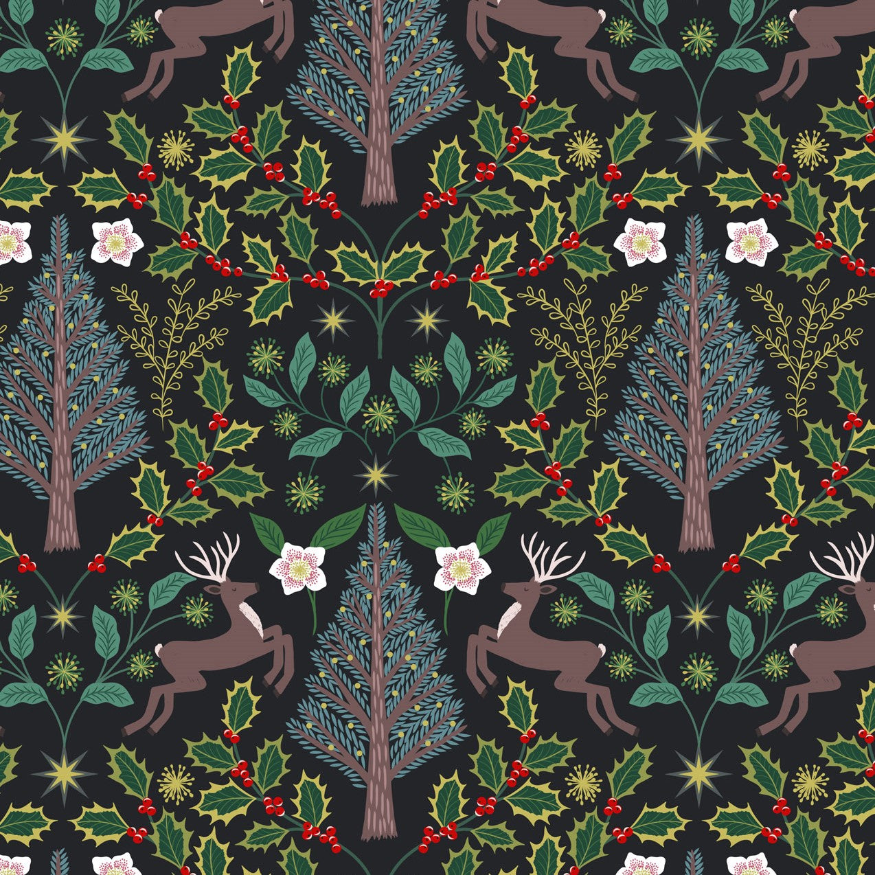Yuletide fabric in black with metallic gold from the Yuletide collection from Lewis & Irene.